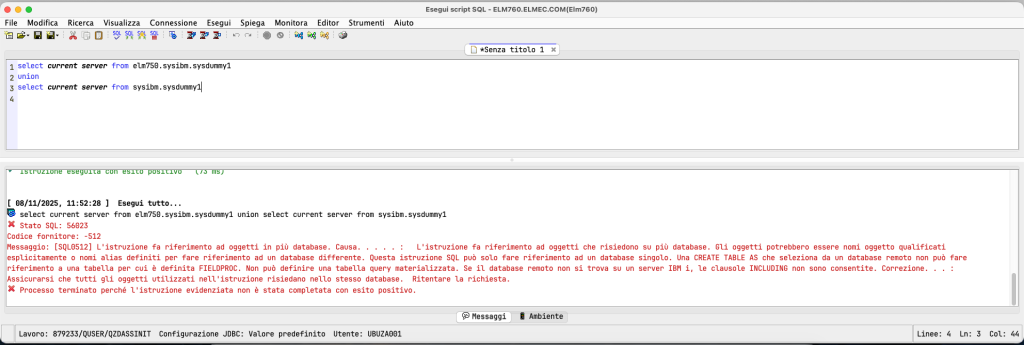 Traditionally, it was already possible to connect from one database to another using the CONNECT TO remote database name statement, but in this case, you opened a stable connection that was closed only when the SQL job was closed or, in general, with the CONNECT RESET statement: