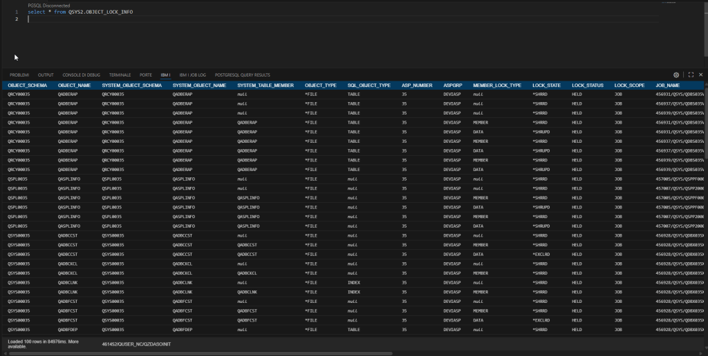 Let’s look at an example of a query on this view without any filters: select * from QSYS2.OBJECT_LOCK_INFO